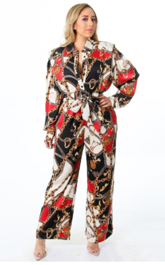 Mono con cinturón y estampado de cadena de satén