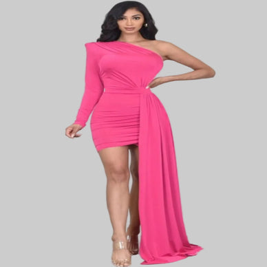 "Gala" - Vestido mini de un solo hombro con cola hasta el suelo