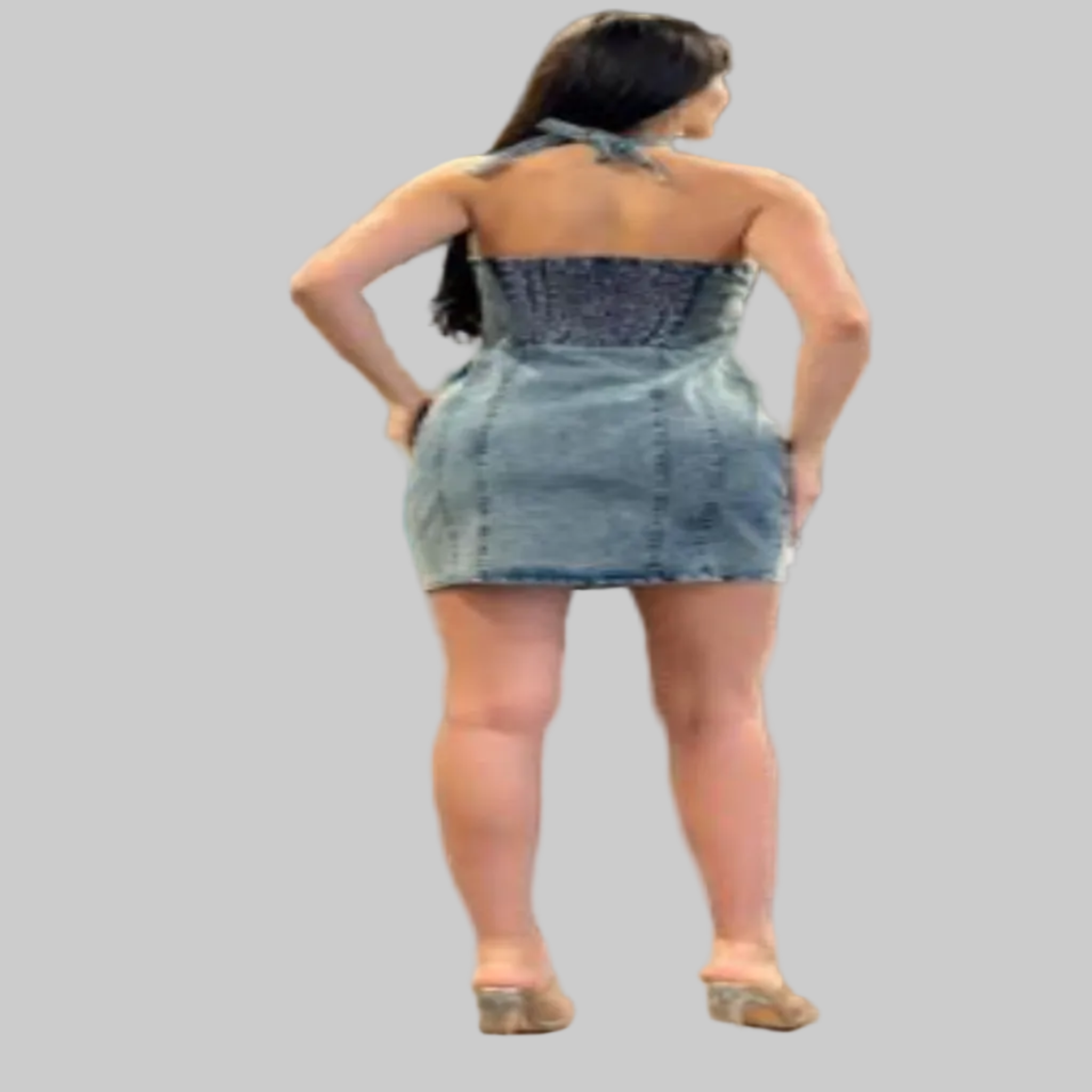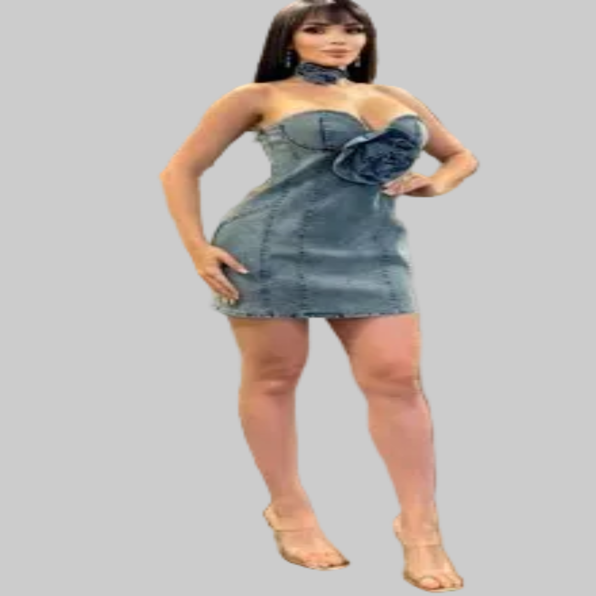 "In Bloom": minivestido vaquero sin tirantes con adornos florales