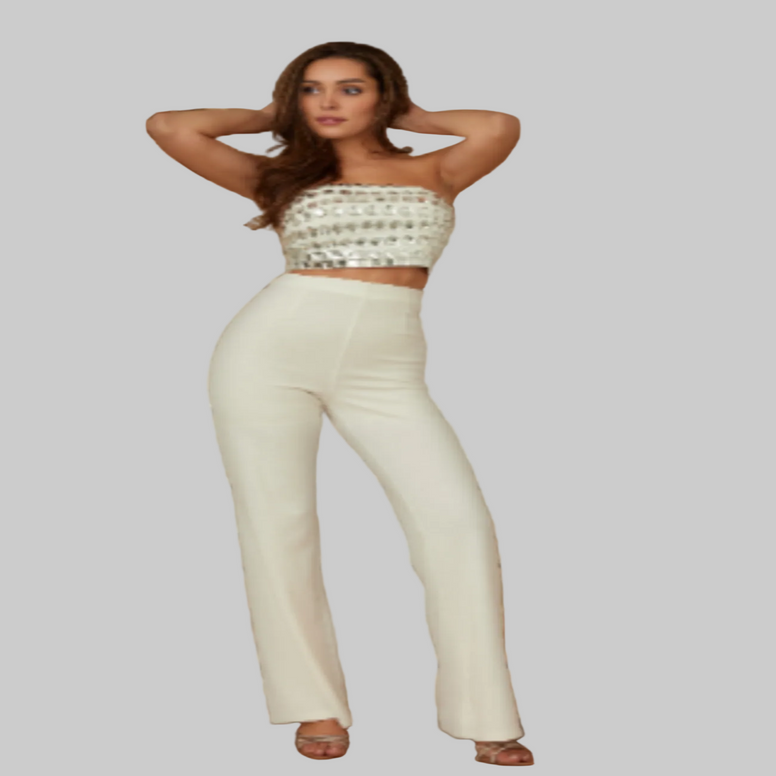 "Top Tier" - Conjunto de top y pantalón con grandes adornos de diamantes de imitación