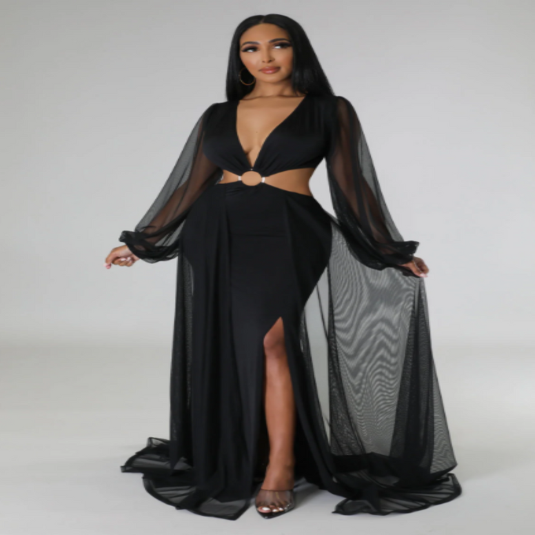 Love Affair - Side Cut-Out Maxi Dress With Side Floor Length Trains