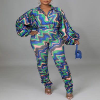 Ensemble body à manches cloche et imprimé abstrait avec bas froncé