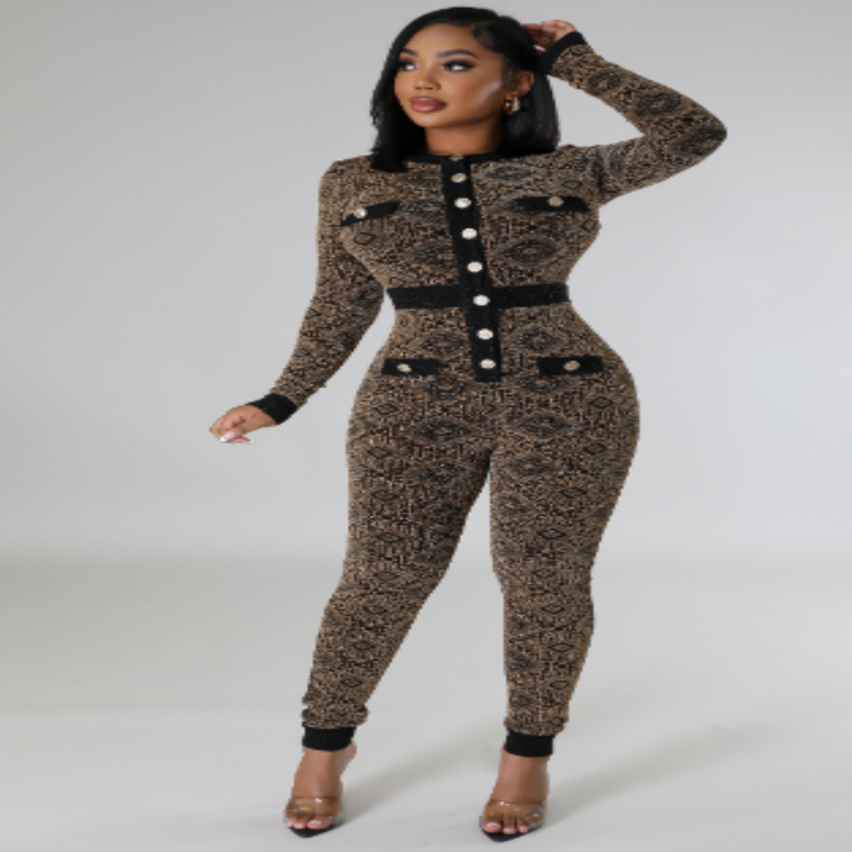 Combinaison métallique ornée de boutons dorés
