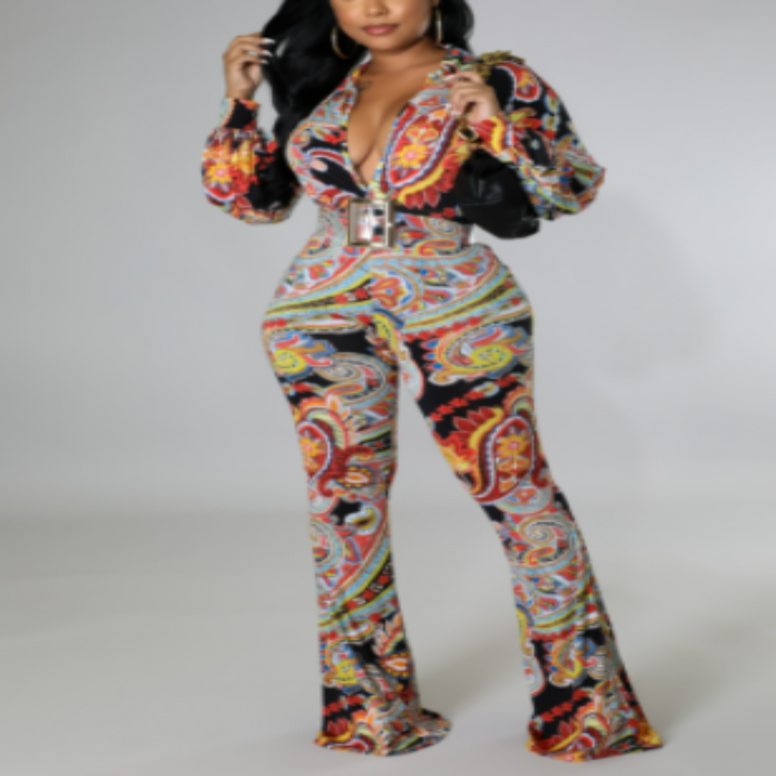 Combinaison pantalon à taille haute et imprimé cachemire (ceinture transparente à boucle dorée incluse) (Coup de cœur de la boutique B'Luxe Clothing !)