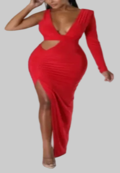 Collection « Red Haute Luxe » - Robe maxi asymétrique à découpe