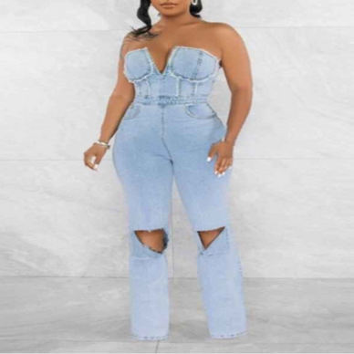 Combinaison bustier en jean délavé