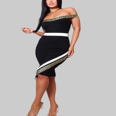 Collection « Géométrique Luxe » - Robe midi à bordure géométrique dorée (Coup de cœur de la boutique B'Luxe Clothing !)