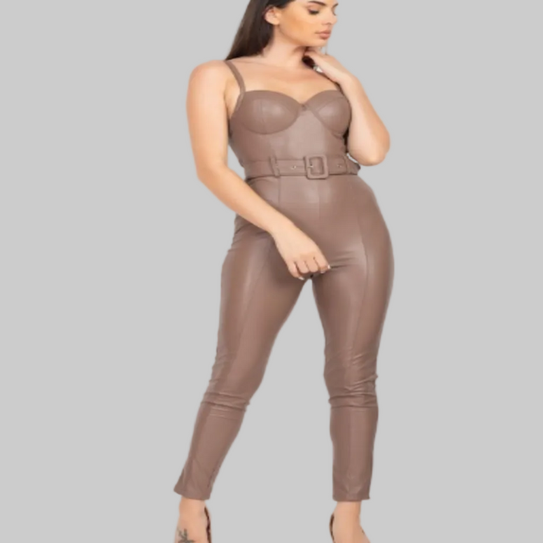 Non-stretch jumpsuit - Halter under boob wire - corset rhinestone - detachable arm sleeves - open back - zipper closure - wide-leg Inseam is 32 inches - 100% Polyester - hand wash cold