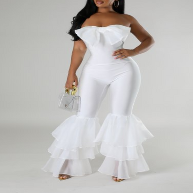 Strapless Bow & Ruffle Embellished Jumpsuit