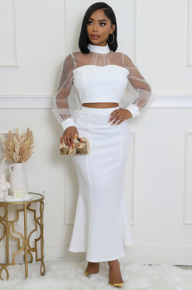 Class Act - Sheer Sleeve Maxi Skirt Set