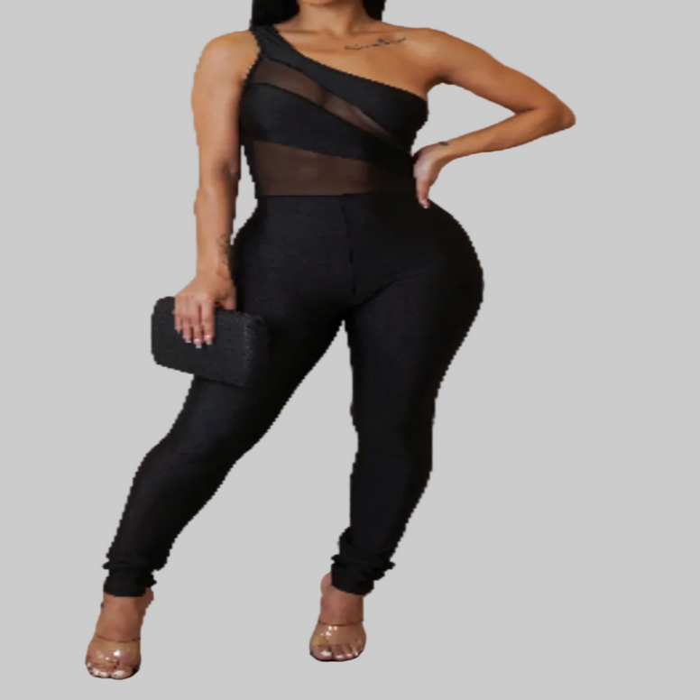 Pink Poodle - One Shoulder Mesh Cut-Out Jumpsuit